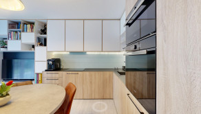 Tento byt je pre mňa výnimočný a som rád, že ho môžeme predávať, majitelia pred nasťahovaním zvážili všetky praktické a estetické detaily, ktoré si uvedomíte pri bežnom užívaní. Ja ich vidím skôr, preto pár z nich spomeniem. Vývod digestora či ventilátora z kúpeľne priamo von, rekuperácia, variabilita vstavaných skríň či vstavaného nábytku až po kvalitné osvetlenie je niečo čo iné byty nemajú.