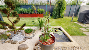 ✅ Upravená záhrada s jazierkom, terasou, záhradnými domčekmi o veľkosti 141m²