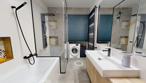 ✅ V kúpeľni je vaňa a aj sprchovací kút