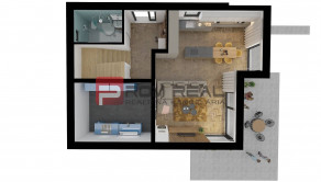 - terasa na poschodí s výhľadom = menšia 3,3 m2 a väčšia 17,0 m2