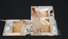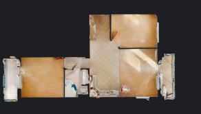 Vstupná chodba, kúpeľňa s vaňou a wc, obývacia miestnosť je spojená s kuchyňou a vstupom na balkón. Vedľa obývacej izby je samostatná izba a cez chodbu sa ide k samostatnej spálni so vstupm na ďalší balkón.