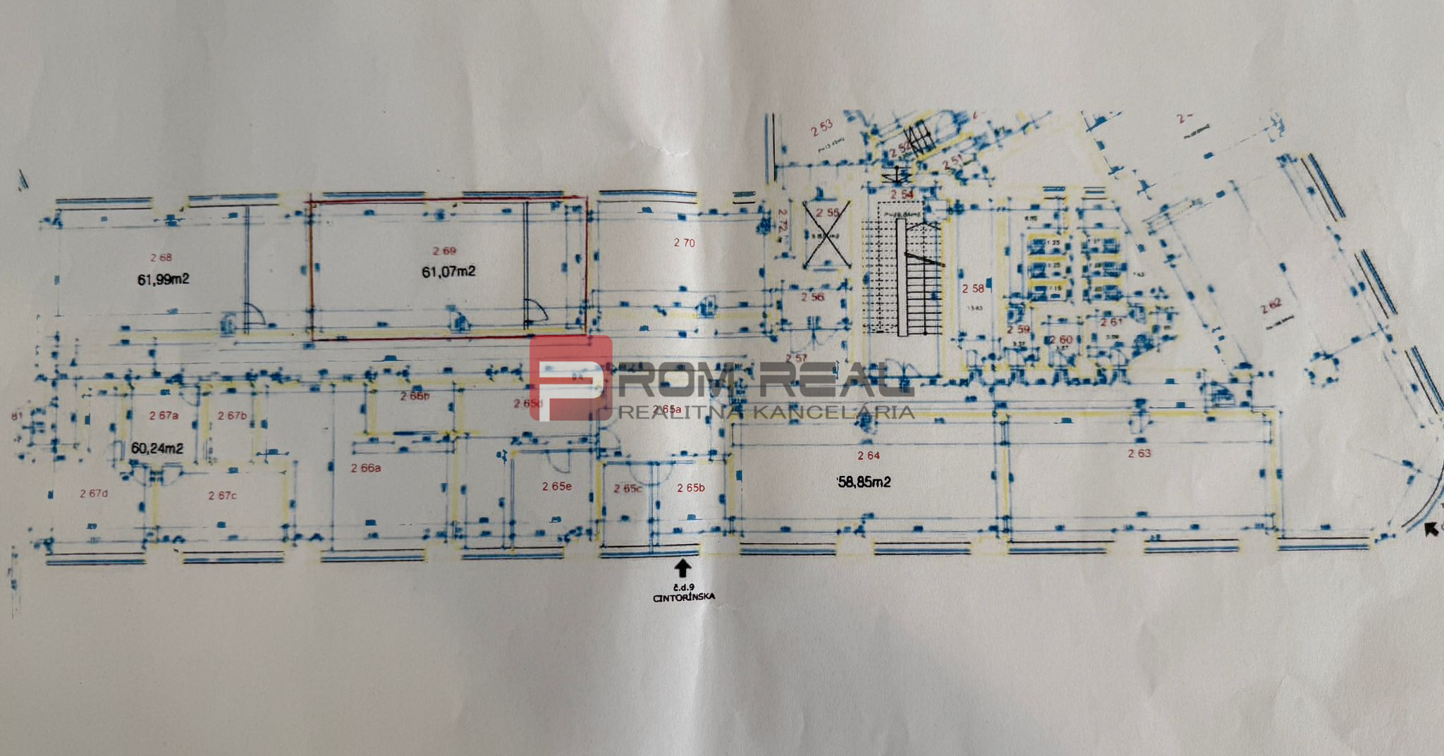 + Cena nájmu za 1 m2 je 12 EUR bez DPH / mesiac /61,07 m2/