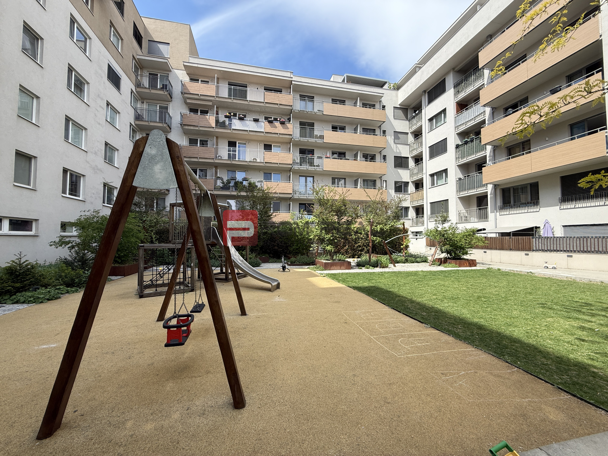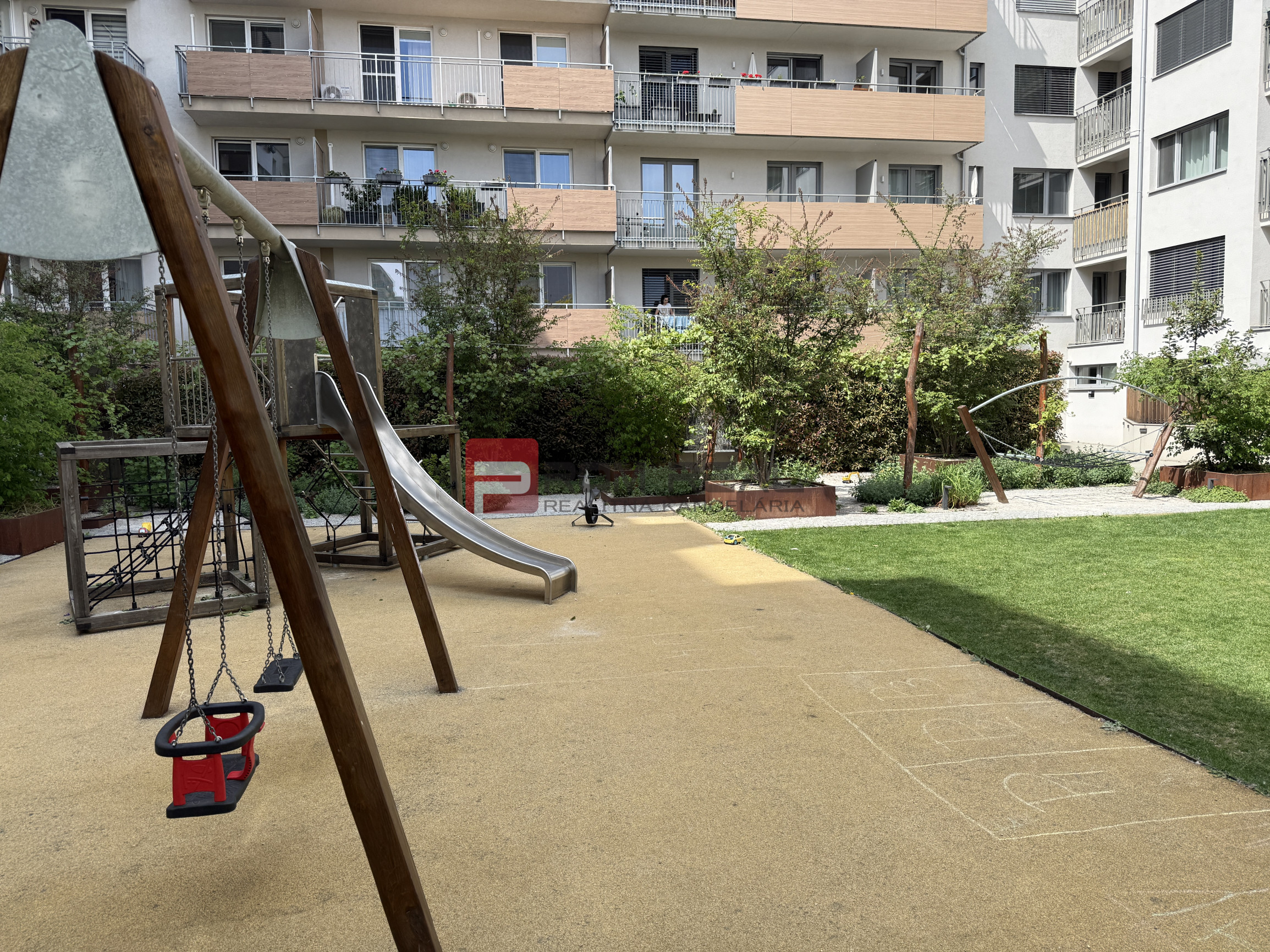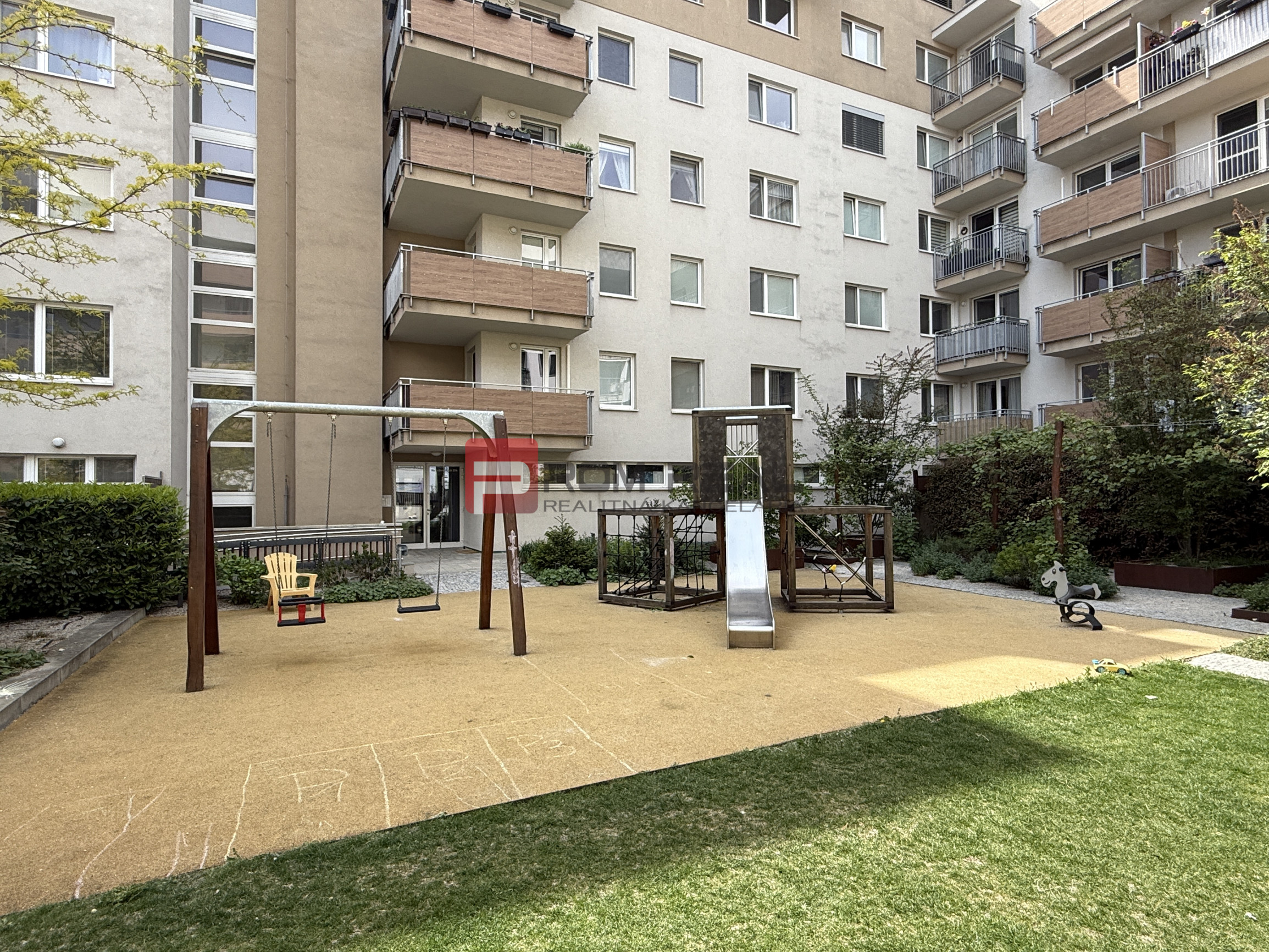 + Zelený vnútroblok s detským ihriskom pre obyvateľov bytového domu.